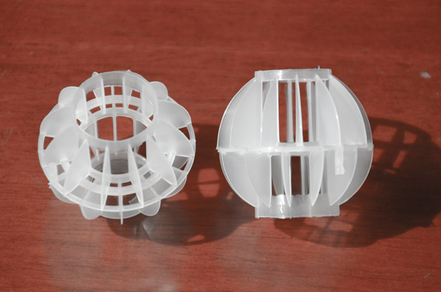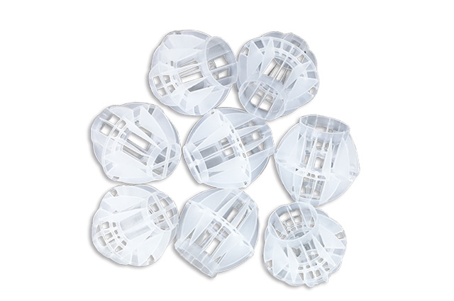 多面空心球中間鏤空結構形成空隙大,不易被阻塞的特性。這種結構在空氣洗滌、廢氣吸收、灰塵過濾等廢氣處理工程方面應用,具有處理風量大、阻力小的特點。由于多面空心球的空隙中有較高的滯液量,可使塔內液體停留時間長,從而增加了氣體與液體的接觸面積和接觸時間,便廢氣得到充分吸收處理。